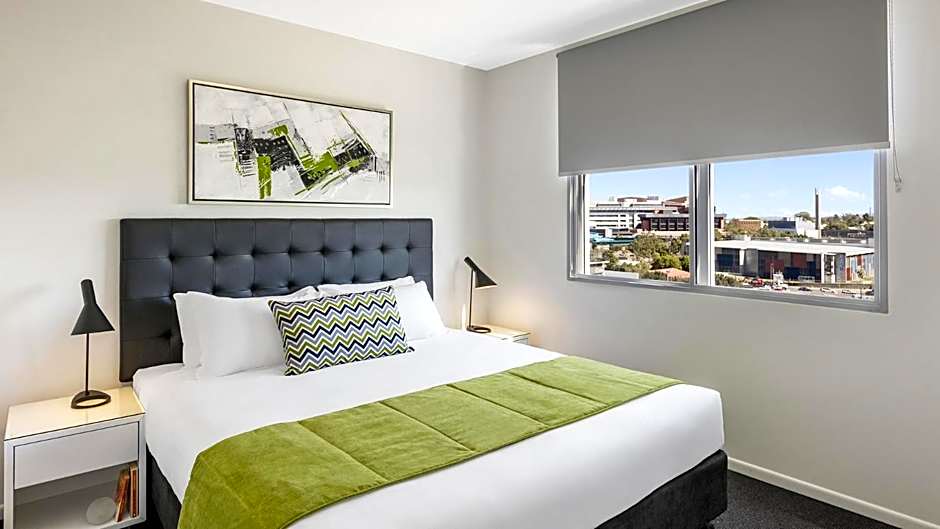 This modern two bedroom apartment features contemporary décor, a spacious living and dining area, a full kitchen, laundry facilities, a study nook, air-conditioning, Wi-Fi access, cable channels, and a private balcony or sun room.